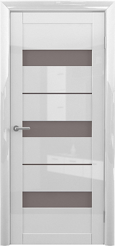 Дверь Прага ширина 90 см Белый глянец Глянец Стекло мателюкс бронза с замком в Туле